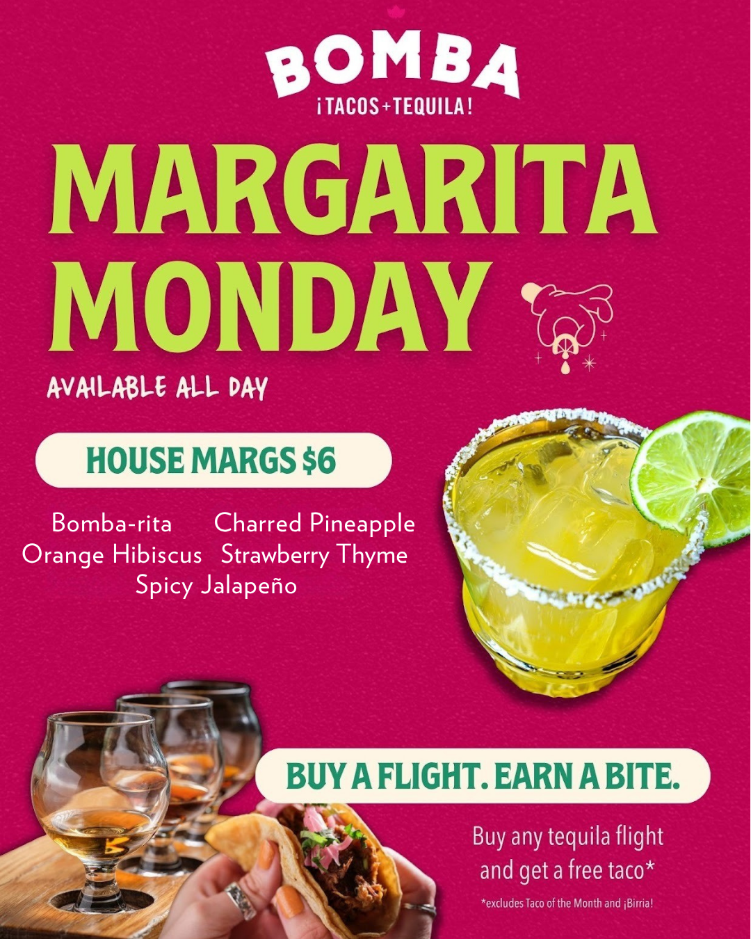 Tuesdays just got even better! Be sure to check out Bomba’s Taco Tuesdays! Delicious Deals